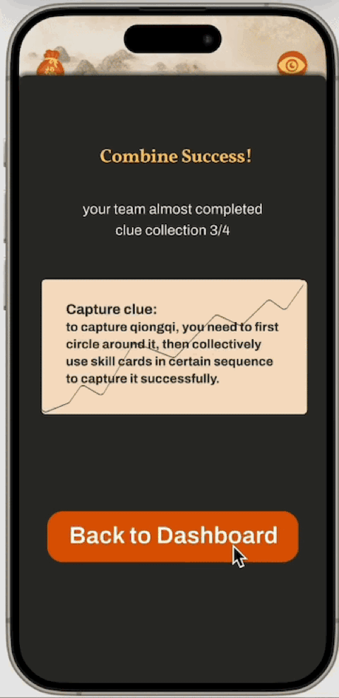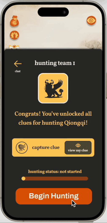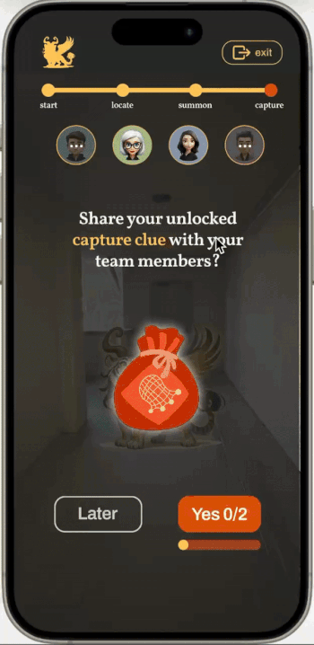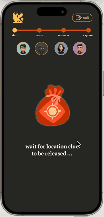 After combining the clue, users can go back to the dashboard to check the unlocking statuses of their other team members to see whether or not they can start the hunt. The hunting process only begins after all team members have successfully unlocked their clues.
