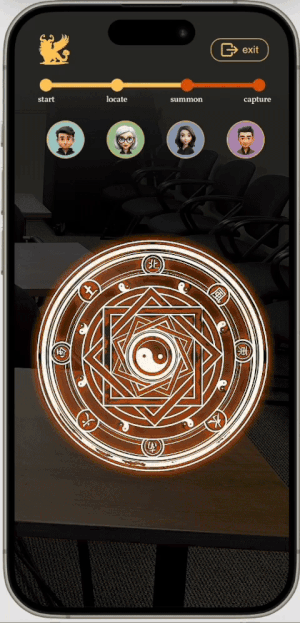 First, the teammate who has unlocked the summon clue will share the clue with the rest of the members. Then, an AR summoning circle appears in the camera view, marking the spot for the summoning ritual.