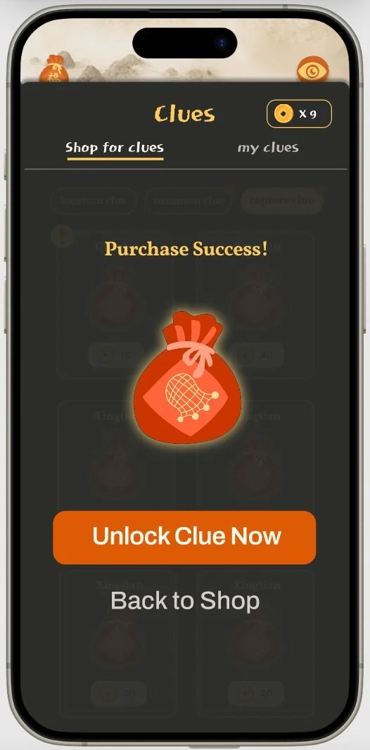 After buying a clue, players need to access the clue by finger-tracing a magic symbol prompted on their phone screen in the form of a Chinese Talisman paper.